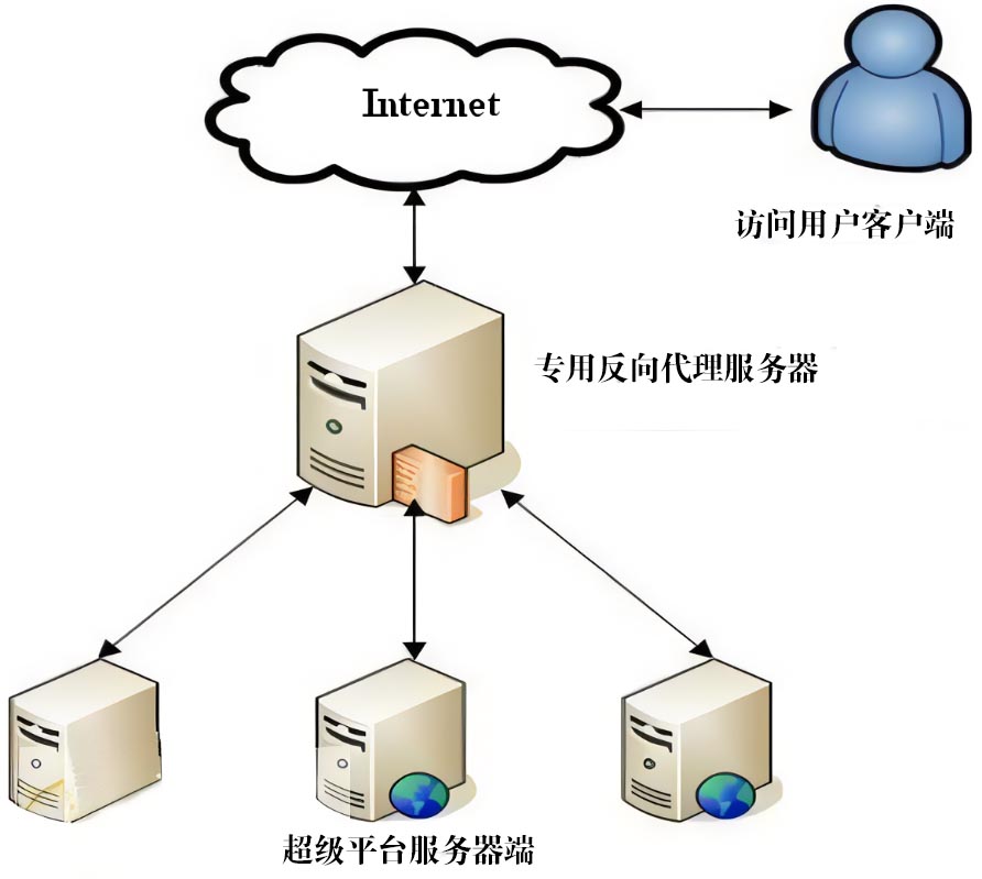 用戶客戶端、超級(jí)平臺(tái)服務(wù)器端對(duì)于專用反向代理服務(wù)器都是客戶端(進(jìn)方向連接)。